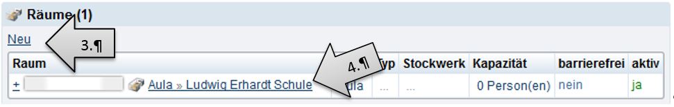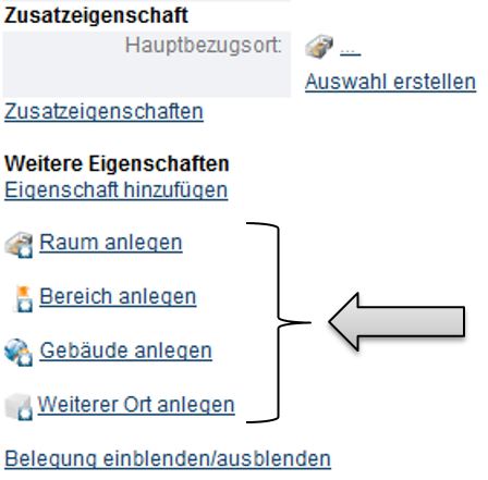 2. Klicken Sie fast ganz unten auf der Seite den entsprechenden Link „Raum anlegen“, „Bereich anlegen“, „Gebäude anlegen“ oder „Weiterer Ort anlegen“ an.