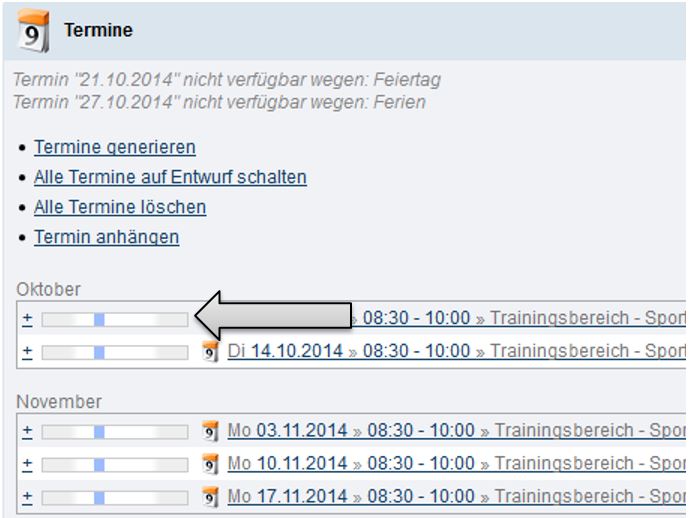 Alternativ zu Terminserien können Sie mit der Applikation „Termine“ auch einzelne Termine generieren.